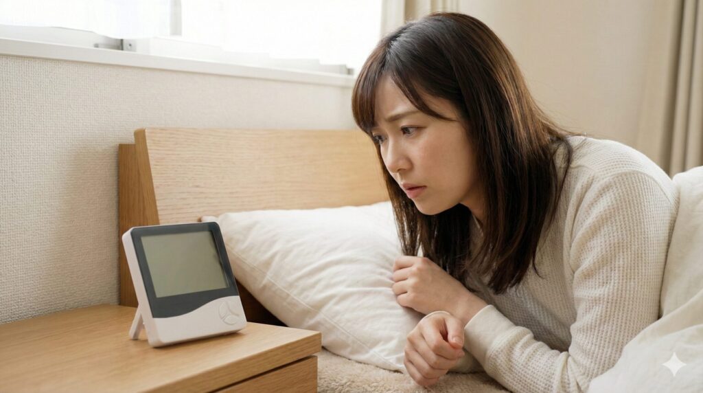 今すぐできる確実な判定方法は、枕元にデジタル温湿度計を置くことです。もし朝起きたときに湿度が70%を示しているなら、あなたの布団の中はダニにとって最高の繁殖環境になっています。人間の発汗によって布団内部の湿度はさらに10〜20%上昇するため、部屋の湿度が60%なら布団の中は80%近いこともあるのです。この数値的証拠があれば、目視確認を待つまでもなく、除湿機や乾燥機による環境制御を最優先すべきだという結論が導き出されます。