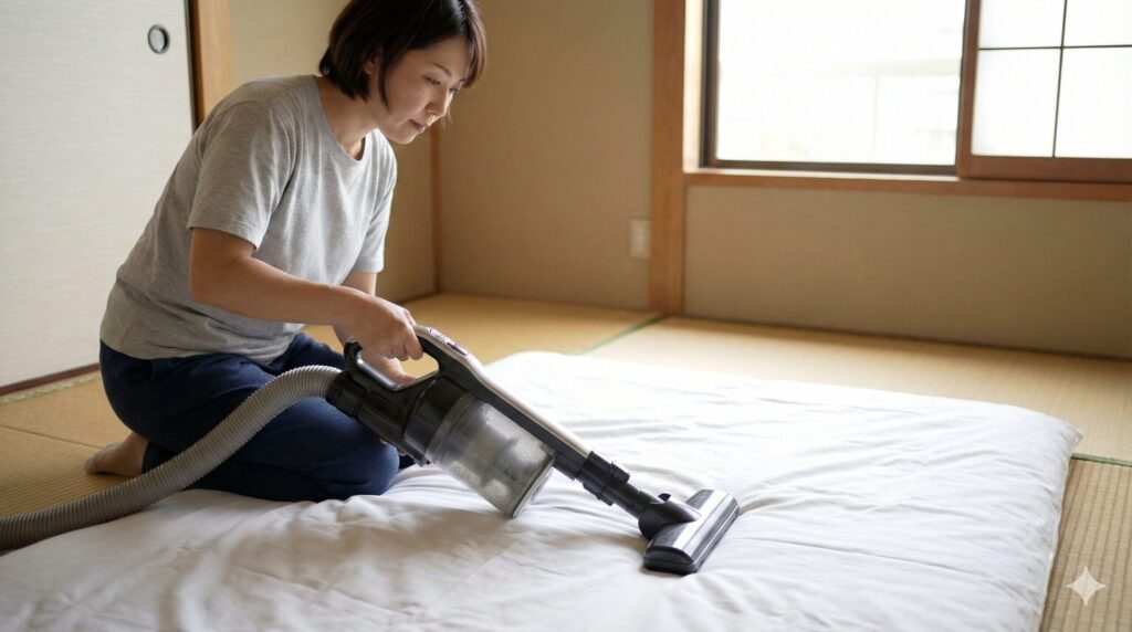 (出典:厚生労働省「(カビ)及びダニ対策」)によれば、寝具への掃除機がけは週に1回以上、表面だけでなく裏側までしっかり行うことが推奨されています。公的なデータでも、この地道な作業の重要性が裏付けられているんです。