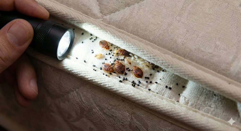 もし、見つけた虫が「羽がなく、平べったく、夜に活動する」トコジラミだと確信した場合、あるいは「血糞(けっぷん)」と呼ばれる黒い点々のシミを寝具に見つけた場合は、早急に対処を開始しなければなりません。トコジラミは一度住み着くと、凄まじいスピードで増殖していきます。まずやるべきことは、彼らの「潜伏場所(コロニー)」を特定することです。