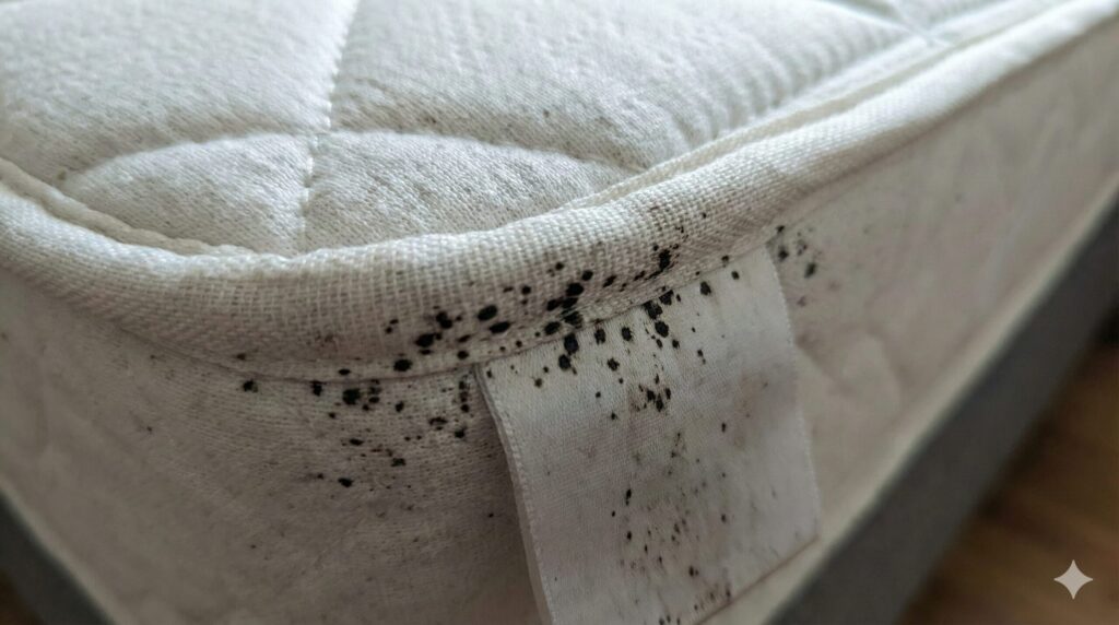 - マットレスの四隅、縫い目、タグの裏側(一番の密集地です)