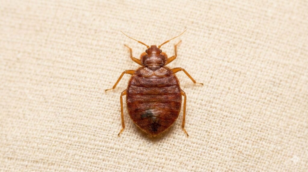 ネットで「トコジラミ 死骸 画像」と調べて自分の家のものと比較する際、注目すべきは「体の形」と「部位の構成」です。トコジラミの成虫は、体長がだいたい5ミリから8ミリ程度で、スイカの種やアズキのようなサイズ感をイメージすると分かりやすいかなと思います。最大の特徴は、上下からギュッと押しつぶされたような「極端に平らな楕円形」をしていることです。この平らな体のおかげで、紙一枚通るかどうかのわずかな隙間にも潜り込むことができるんですね。死骸になって乾燥が進むと多少形が歪むこともありますが、この楕円形のシルエットは大きな判断基準になります。