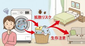 なお、洗濯機や乾燥機を使う際の注意点を誤ると、逆にトコジラミを家中に拡散させてしまうケースもあります。洗濯槽や排水経路への影響など、より詳しい注意点については、以下の記事で解説しています。