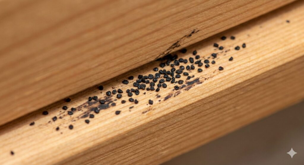 - 複数の部屋で発見した:リビングと寝室など、離れた場所で血糞や抜け殻を見つけた場合、すでに家全体に広がっています。