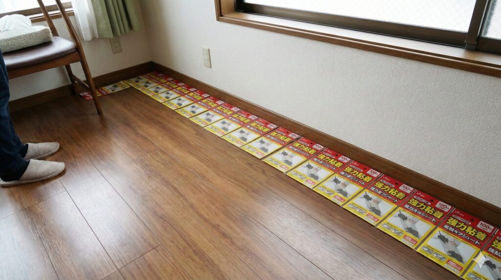 例えば、粘着シートは100円台で購入できるメリットを活かして、数枚ではなく10枚、20枚とまとめ買いするのがセオリーです。ネズミの通り道と思われる壁際に、隙間なくシートを敷き詰めることで、ジャンプして逃げられる隙を与えません。このように、一点高価な道具を使うよりも、安価な道具を隙間なく大量に配置する方が、特に対策初期には効果的だったりします。私自身、最初は1枚2枚で試して失敗したのですが、「道」を作るように敷き詰めたら反応が変わった経験があります。