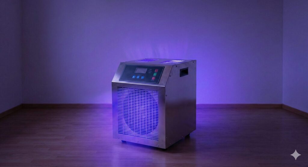 死骸を撤去しても、染み付いた臭いを市販の消臭スプレーだけで消すのは難しいケースが多いです。芳香剤などは臭いを別の香りで被せるだけなので、時間が経つと腐敗臭と混ざり合い、さらに複雑な臭いへと変化してしまうこともあります。そこで頼りになるのが、プロの現場で使われる「オゾン発生装置」です。オゾンには強い酸化力があり、臭いの元となる有機化合物を分解してくれる効果が期待できます。(※使用時は無人環境での実施が前提です。)
