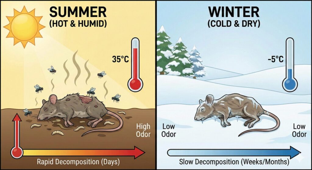 夏場や冬場の環境で変わる死骸の消失目安期間
