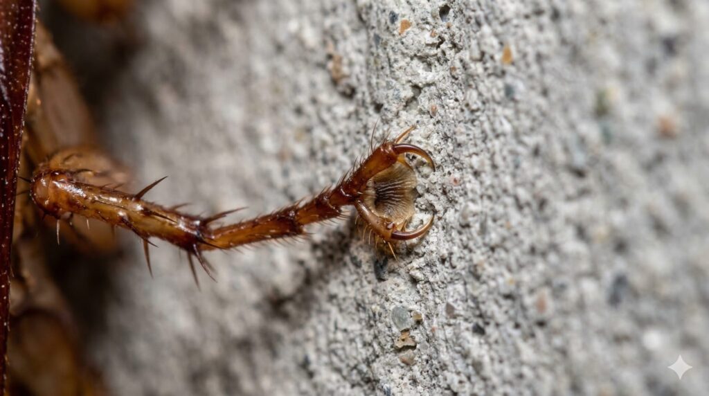ゴキブリが二階に出現する最大の理由は、彼らが持つ「垂直移動のスペシャリスト」としての身体構造にあります。多くの人が「二階まで登ってくるなんて無理だろう」と考えがちですが、彼らの脚には二つの強力な武器が備わっています。一つは鋭い「爪」で、コンクリートや木材などのわずかな凹凸に引っ掛けて登ることができます。もう一つが「付節盤(ふせつばん)」と呼ばれる粘着パッド状の器官で、これがあるおかげで、ガラスに近い滑らかな面でもある程度移動できますし、滑らかな金属配管でさえも重力に逆らって移動できるのです。