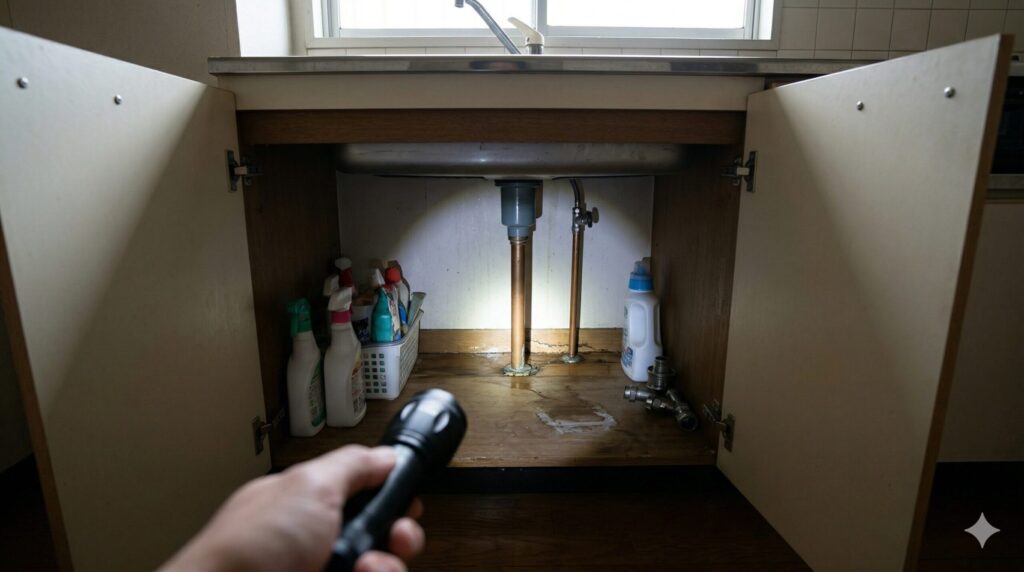 - 配管の貫通部:シンク下や洗面台の下で、パイプが床を通る箇所の隙間。